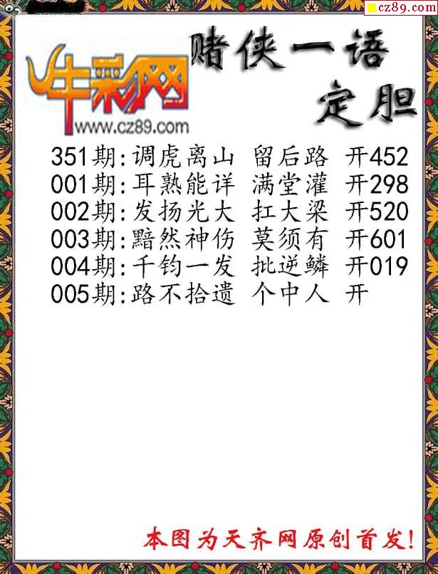 > 福彩3D2026005期彩赌侠一句定三码字图谜